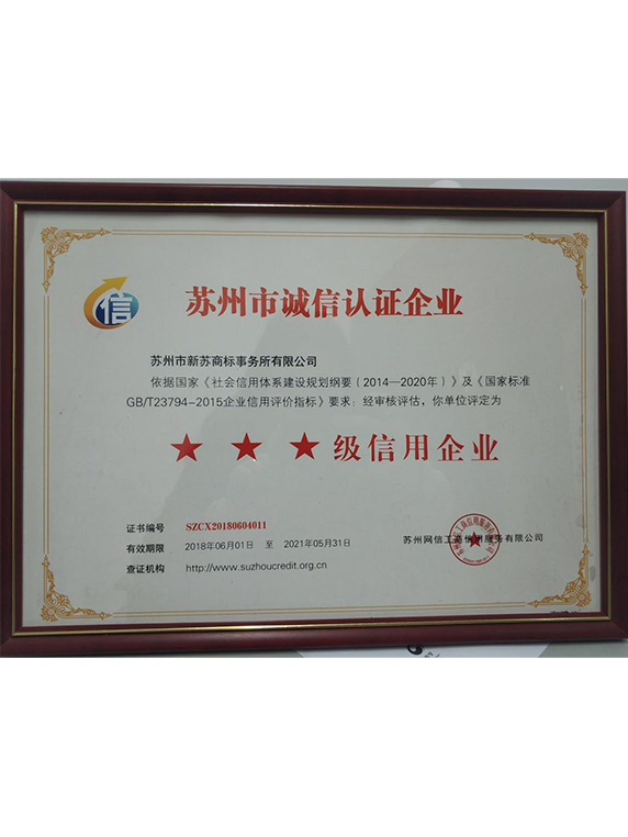 蘇州市誠信認(rèn)證三星企業(yè)